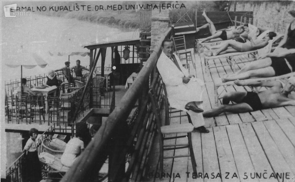 Dr. Majerič na terasi kopališča Elemento multimediale 27.05.2021 15:36 pubblicato da Knjižnica Ivana Potrča Ptuj Kopališče dr. Majeriča v Ormožu – ustanovitelj sedi ob ograji kopališčne terase (sredina 30. let 20. stoletja). Slika FacebookXPinterestLinkedIn Natisni Natisni brez slik