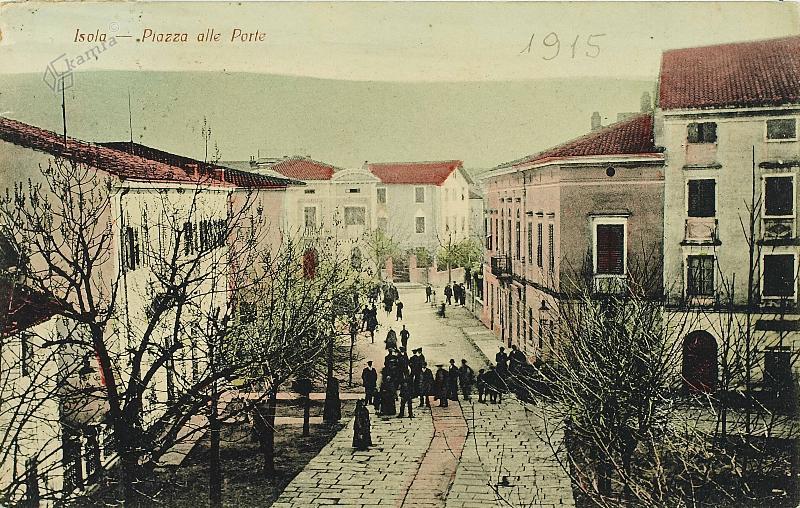 Isola: Piazza alle Porte Elemento multimediale 08.08.2011 09:59 pubblicato da Mestna knjižnica Izola Razglednica je bila poslana, ročno napisan datum 7.7.[19]15. Na razglednici je trg z imenom Piazza alle Porte – danes je tu zelenjavna tržnica oziroma Kristanov trg. Na trgu je polno ljudi, levo in desno so drevesa. Slika FacebookXPinterestLinkedIn Natisni Natisni brez slik