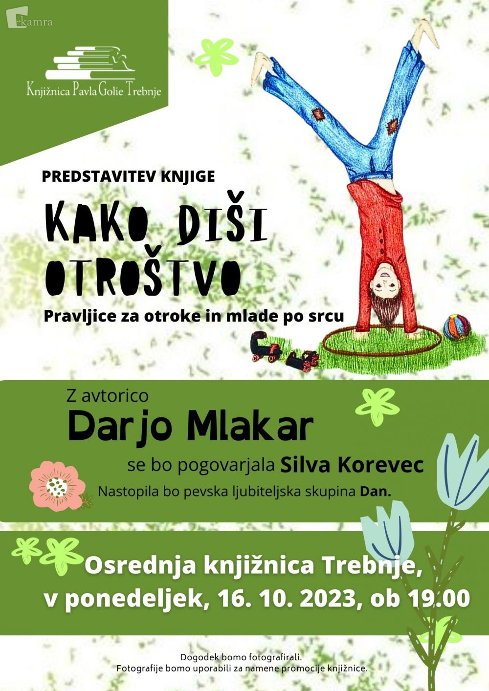 Pravljice za otroke in vse, ki so mladi po srcu bomo v Knjižnici Pavla Golie Trebnje predstavili v ponedeljek, 16. oktobra 2023 ob 19. uri. Silva Korevec se bo pogovarjala z avtorico pravljic Darjo Mlakar z Dolenje vasi pri Čatežu.