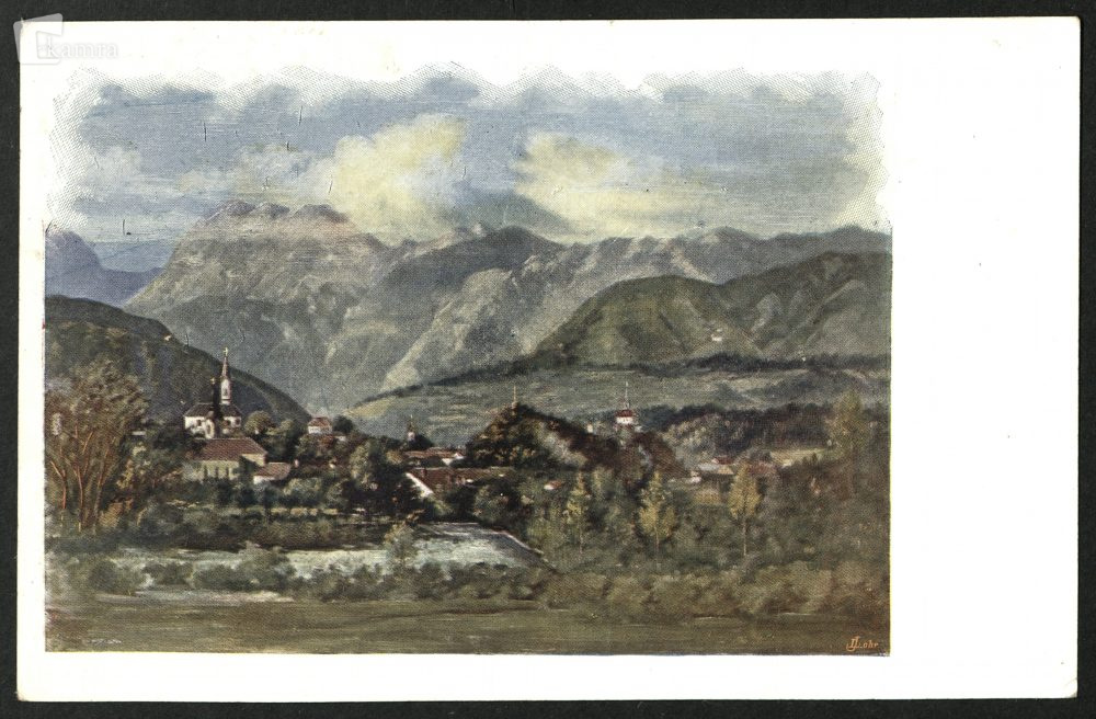Kamnik Elemento multimediale 12.09.2017 06:55 pubblicato da Knjižnica Franceta Balantiča Kamnik Pogled na Mali grad, Žale, župnijsko cerkev na Šutni. V ospredju reka Kamniška Bistrica, v ozadju Kamniške Alpe. Risana barvna razglednica. Slika FacebookXPinterestLinkedIn Natisni Natisni brez slik