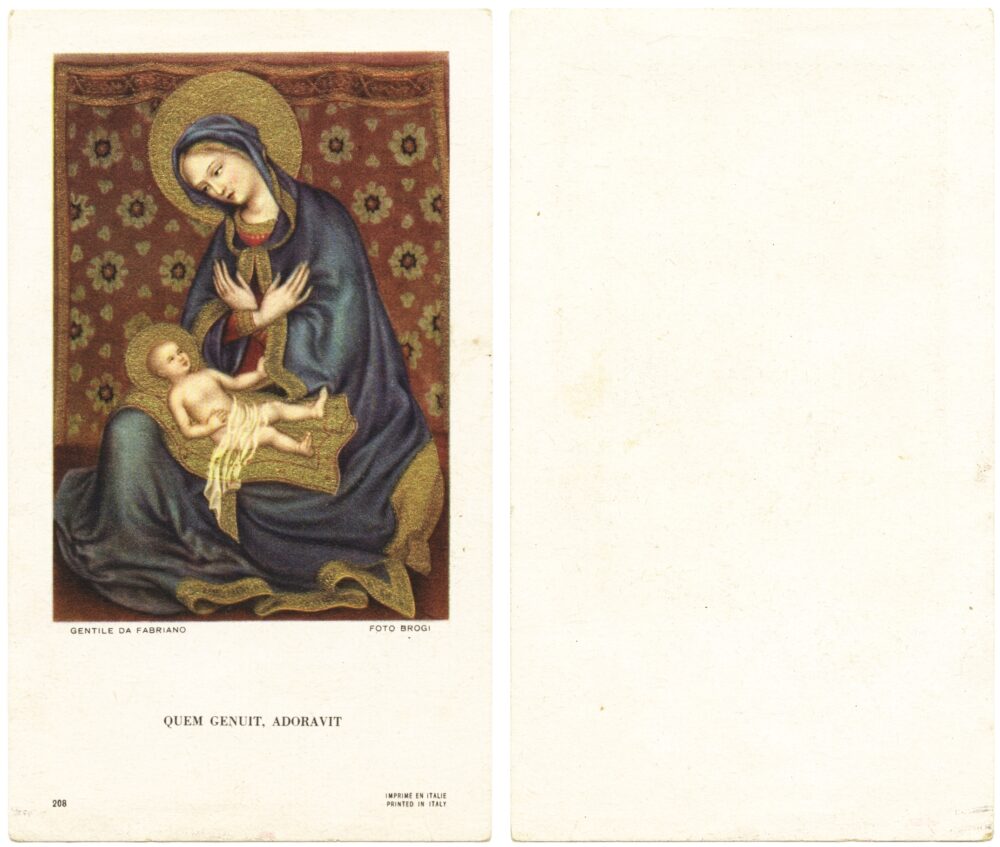 Marija z Detetom Elemento multimediale 16.10.2025 22:05 pubblicato da Knjižnica Jožeta Udoviča Cerknica Marija z Detetom (Gentile da Fabriano, foto Giacomo Brogi). Tiskano v Italiji. Mere: 6,6 x 11,4 cm. Zbirka Fani Turšič iz Begunj pri Cerknici. Slika FacebookXPinterestLinkedIn Natisni Natisni brez slik