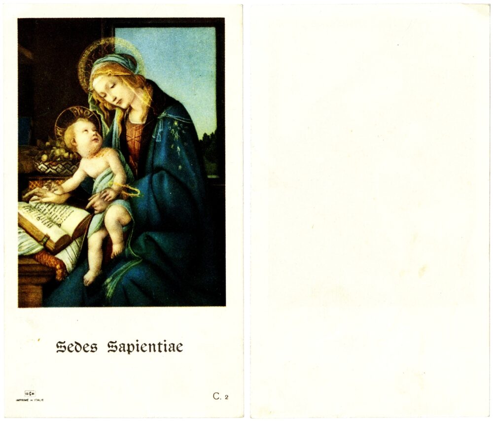 Marija z Detetom Elemento multimediale 16.10.2025 22:05 pubblicato da Knjižnica Jožeta Udoviča Cerknica Marija z Detetom. Sedes Sapientiae (Sedež modrosti). Milano: EGIM Edizioni Grafiche Isonzo, 1947–2014. Mere: 6 x 10,4 cm. Zbirka Joži Mele iz Cerknice. Slika FacebookXPinterestLinkedIn Natisni Natisni brez slik