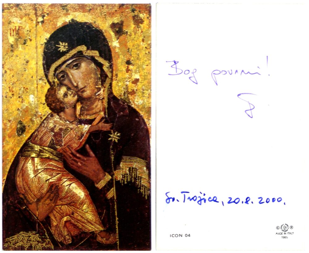 Marija z Detetom Elemento multimediale 16.10.2025 22:05 pubblicato da Knjižnica Jožeta Udoviča Cerknica Marija z Detetom. Milano: FB Fratelli Bonella, 1985. Mere: 6,4 x 10,8 cm. Zbirka družine Kranjec iz Topola pri Begunjah. Slika FacebookXPinterestLinkedIn Natisni Natisni brez slik