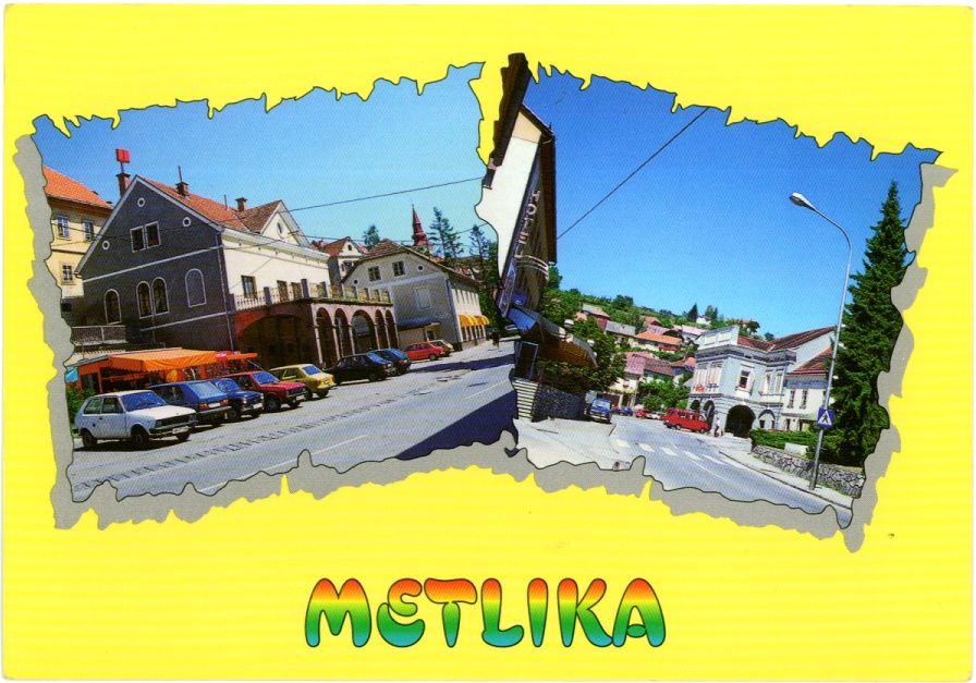 Metlika Elemento multimediale 09.09.2019 14:11 pubblicato da Ljudska knjižnica Metlika Razglednica z motivoma Metlike. Levo Murnova hiša s teraso, zraven današnja Galerija Kambič, desno metliški hotel, pogled naVeselico. Razglednica je bila poslana 10. 5. 1999 v Trbovlje. Založnik Fotolik Celje, foto F. Mauer. Slika FacebookXPinterestLinkedIn Natisni Natisni brez slik