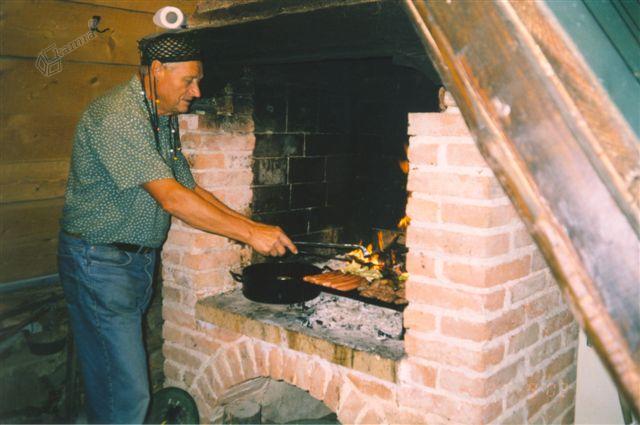 Člani Celjskega plesnega orkestra Žabe so znali poskrbeti za prijateljsko druženje. Franc Mauer “lastnik žara” preverja, če je vse pod kontrolo.