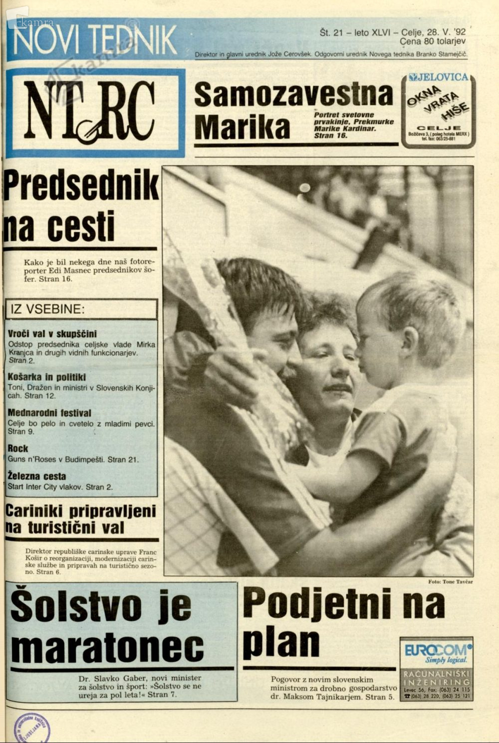 Novi tednik - 28. 5. 1992 Elemento multimediale 24.11.2010 13:16 pubblicato da Osrednja knjižnica Celje Naslovnica Novega tednika, ki je izšel 28. maja 1992. Celo številko si lahko ogledate tukaj. Slika FacebookXPinterestLinkedIn Natisni Natisni brez slik