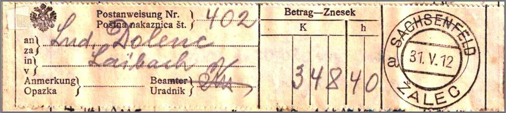 Odrezek poštne nakaznice iz leta 1912 Elemento multimediale 16.01.2017 18:09 pubblicato da Medobčinska splošna knjižnica Žalec Lep primerek poštnega žiga z odrezka poštne nakaznice iz leta 1912 s podpisom poštnega uradnika (Križan). V Žalcu sta bila poštarja Karl in Marija Križan. Slika FacebookXPinterestLinkedIn Natisni Natisni brez slik