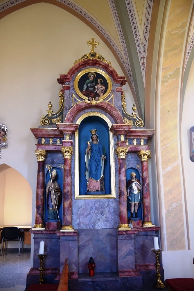 Leta 1682 je kuga v fari sv. Lovrenca na Dravskem polju v enem četrtletju v grob položila 310 ljudi. Po tej nesreči so v tamkajšnji župnijski cerkvi postavili oltar v čast sv. Barbari, patronici umirajočih. V cerkvi je stal dvesto let, leta 1885 pa so ga zaradi grožnje, da se bo porušil, zamenjali z novim oltarjem sv. Barbare (na sliki). Izdelal ga je Tomaž Fantoni iz Konjic, postaviti pa ga je dala Marija Kreisl, v spomin na pokojnega soproga Venceslava (umrl 5. marca 1867 v Sternthalu, pokopan je v Lovrencu). Zraven osrednjega lika sv. Barbare sta na oltarju tudi kipa sv. Miklavža in sv. Florjana ter podoba sv. Ane. V 60-ih letih 20. stoletja so oltar prenesli v cerkev sv. Antona Padovanskega v bližnji Župečji vasi, kjer je še danes.