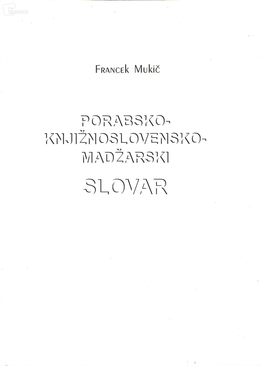 Ovojni naslov Porabsko-knjižnoslovenskega-madžarskega slovarja Elemento multimediale 03.11.2025 13:20 pubblicato da Pokrajinska in študijska knjižnica Murska Sobota Slovar je izšel leta 2005 v Sombotelu v založništvu Zveze Slovencev na Madžarskem. Slika FacebookXPinterestLinkedIn Natisni Natisni brez slik
