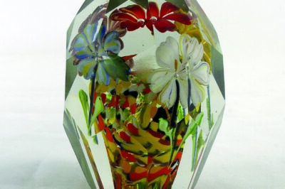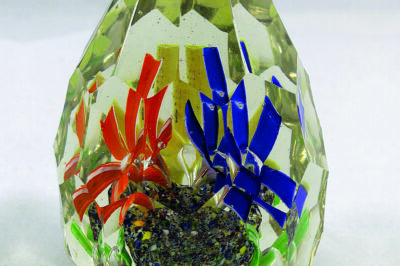 Obtežilnik iz rahlo rjavkasto toniranega stekla s štirimi nivoji fasetnih polj 15.12.2025 Osrednja knjižnica Celje 0 ogledov
