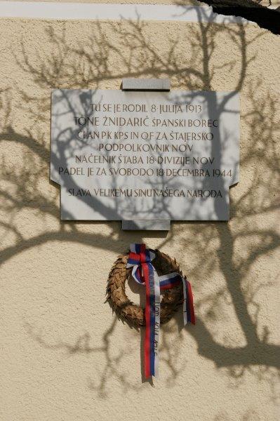 Spominska plošča na rojstni hiši Toneta Žnidariča (1913-1944) v Novi vasi pri Ptuju, ki je bil v letih 1942 in 1943 med organizatorji partizanstva na tem območju.