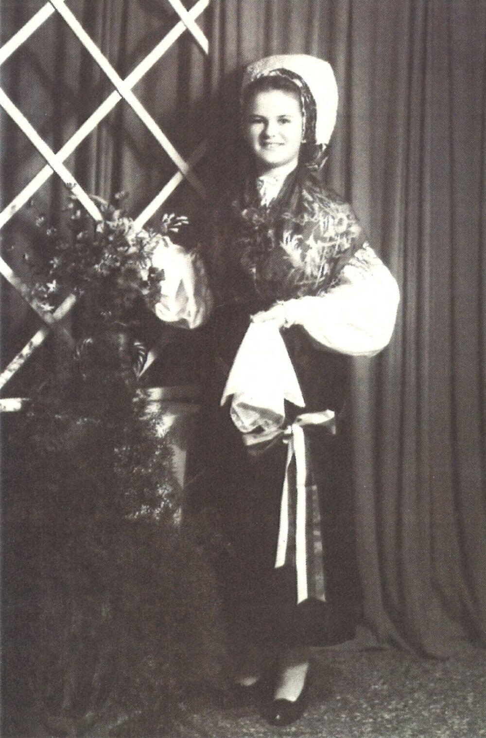 Polona v narodni noši Elemento multimediale 13.10.2025 13:13 pubblicato da Cankarjeva knjižnica Vrhnika Napis na zadnji strani: Janezu in Boži za spomin od Polonce, 13. 4. 1952. Slika FacebookXPinterestLinkedIn Natisni Natisni brez slik