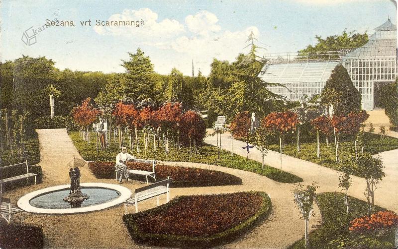 Iz barvane razglednice vrta Scaramangà lahko vidimo, da je bil ta vedno lepo urejen. Tudi zasnova se skozi čas ni bistveno spreminjala. Palmarij v njem je bil zgrajen že okrog leta 1890. Scaramangà je popotnikom dobrodušno dovolil sprehajanje in fotografiranje v parku. Zaradi gradnje železnice je park danes manjši, kot je bil nekoč.