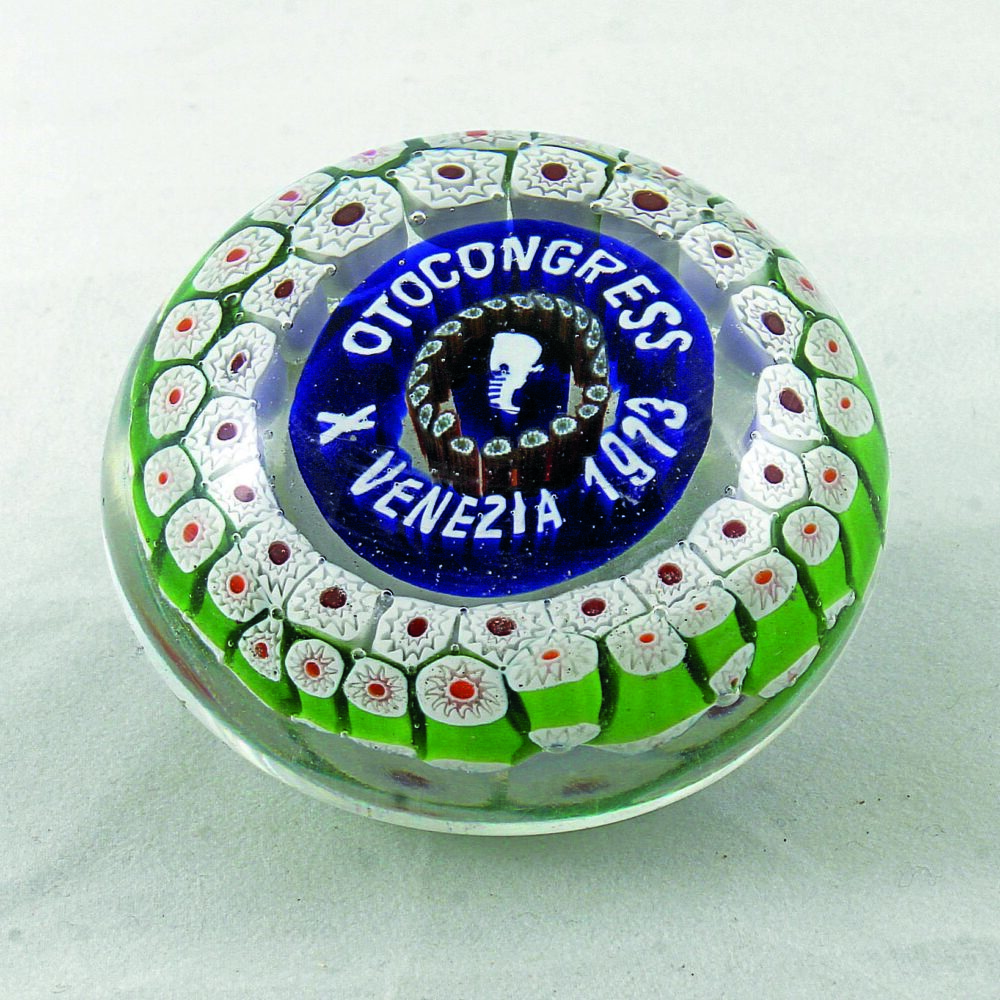 Spominski obtežilnik 10. svetovnega kongresa otorinolaringologov v Benetkah Elemento multimediale 15.12.2025 11:41 pubblicato da Osrednja knjižnica Celje Več stoletij stara tehnika »millefiori« je med oblikovalci stekla po celem svetu še vedno zelo priljubljena. Na sliki spominski obtežilnik 10. svetovnega kongresa otorinolaringologov v Benetkah. Slika FacebookXPinterestLinkedIn Natisni Natisni brez slik