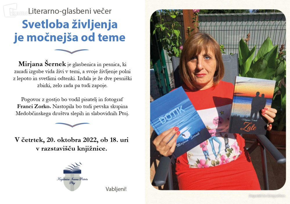 Svetloba življenja je močnejša od teme Elemento multimediale 06.10.2022 13:24 pubblicato da Knjižnica Ivana Potrča Ptuj Slika FacebookXPinterestLinkedIn Natisni Natisni brez slik