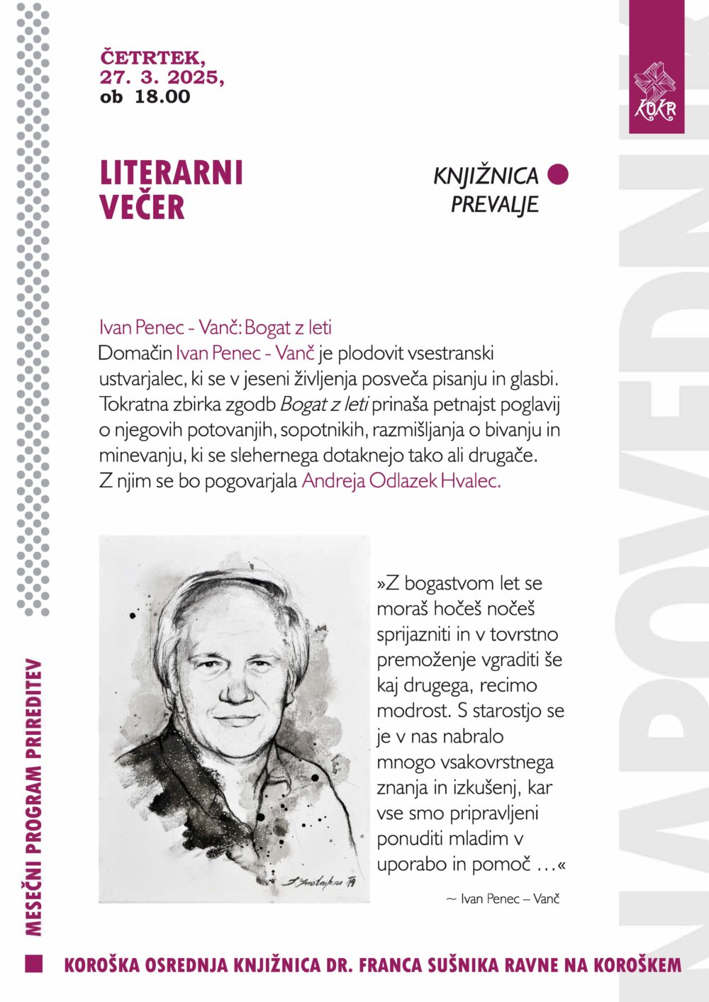Vabilo na literarni večer z Ivanom Penecom Elemento multimediale 19.03.2025 10:42 pubblicato da Koroška osrednja knjižnica dr. Franca Sušnika Slika FacebookXPinterestLinkedIn Natisni Natisni brez slik