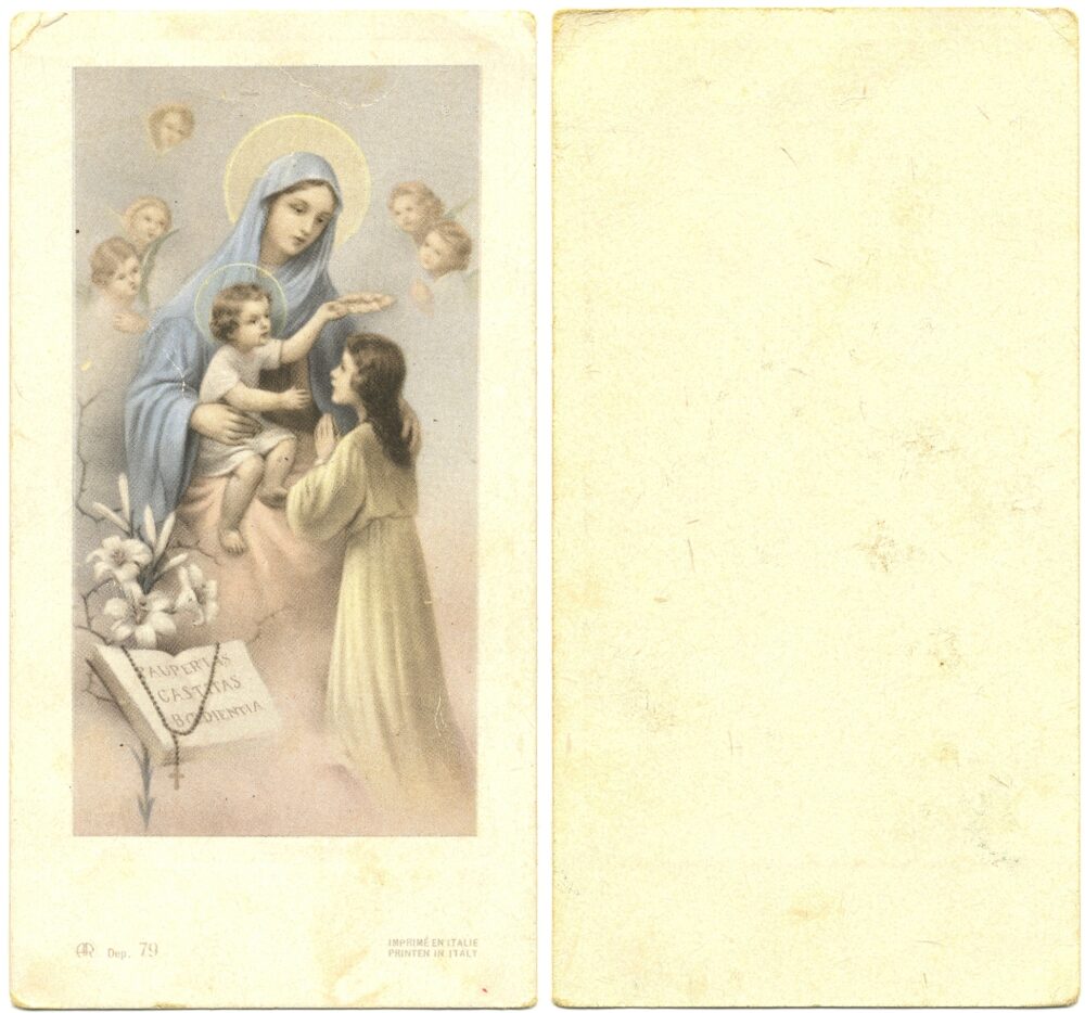 Večne zaobljube Elemento multimediale 16.10.2025 22:05 pubblicato da Knjižnica Jožeta Udoviča Cerknica Večne zaobljube. Milano: AR Ambrosiana Riproduzioni, 1910–1970. Mere: 6 x 11,3 cm. Zbirka družine Otoničar iz Martinjaka. Slika FacebookXPinterestLinkedIn Natisni Natisni brez slik