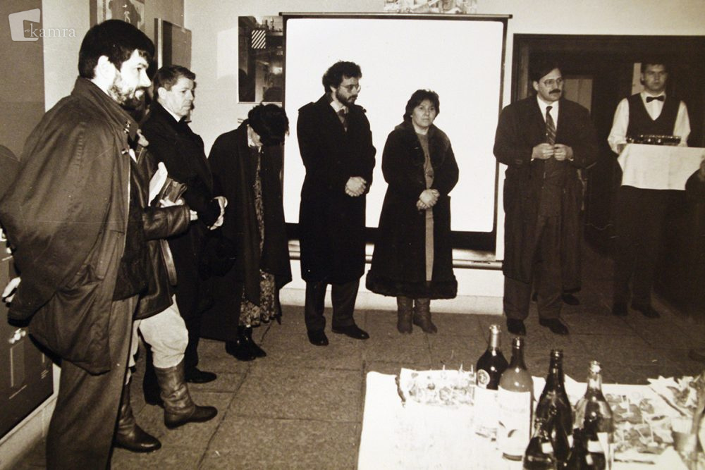 Fotografija prikazuje kako Železarna Jesenice predaja ključe muzeja Občini Jesenice, 8. februar 1992. Od leve proti desni: Mitja Bricelj, Slavica Osterman (zakrita), Boris Bregant, Rina Klinar, Vitomir Pretnar, Iva Faletič in Tone Konobelj. Fotografijo hrani Boris Bregant.