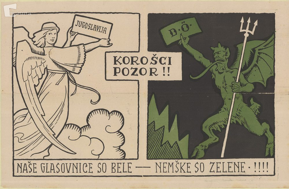Beli angel Elemento multimediale 03.06.2020 08:07 pubblicato da Knjižnica Mirana Jarca Novo mesto Beli angel kot simbol slovenstva je prinašal svežino, mladost in nedolžnost. Nemško Avstrijo je predstavljal zeleni hudič, ki že stoletja škoduje Koroški. (SI_ZAL_ŠKL/0291, Zbirni fond, t. e. 6, a. e. 181) Slika FacebookXPinterestLinkedIn Natisni Natisni brez slik
