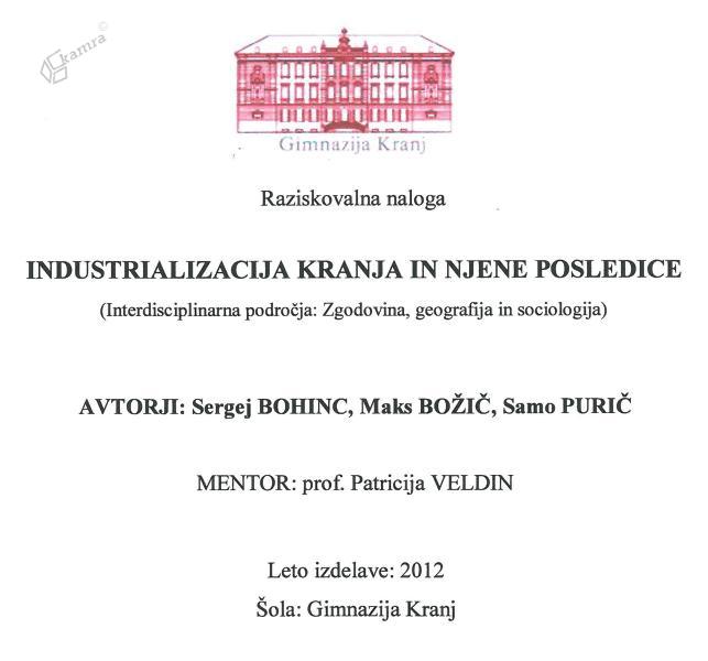 Raziskovalno nalogo so izdelali dijaki 2. letnika Gimnazije Kranj v okviru evropskega projekta Zgodovinski spomin. Skupaj z mentorji, profesorico Patricijo Veldin, kustosi Gorenjskega muzeja in Zgodovinskega arhiva, so raziskali obdobje po koncu 1. svetovne vojne, ko se je v Kranju pričel razvoj tekstilne industrije. S pomočjo nemškega, češkega in poljskega kapitala je Kranj postal močno industrijsko središče, kar je popešilo tudi urbanizacijo mesta, priseljevanje prebivalcev, deagrarizacijo podeželja, nastanek delavskega razreda, razvoj šolstva, zdravstvene oskrbe, športne in kulturne dejavnosti.