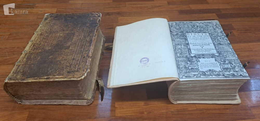 Na sliki desno je Dalmatinova Biblija, ki jo je knjižnici podaril dr. Mitja Vošnjak. Knjiga je zelo dobro ohranjena.