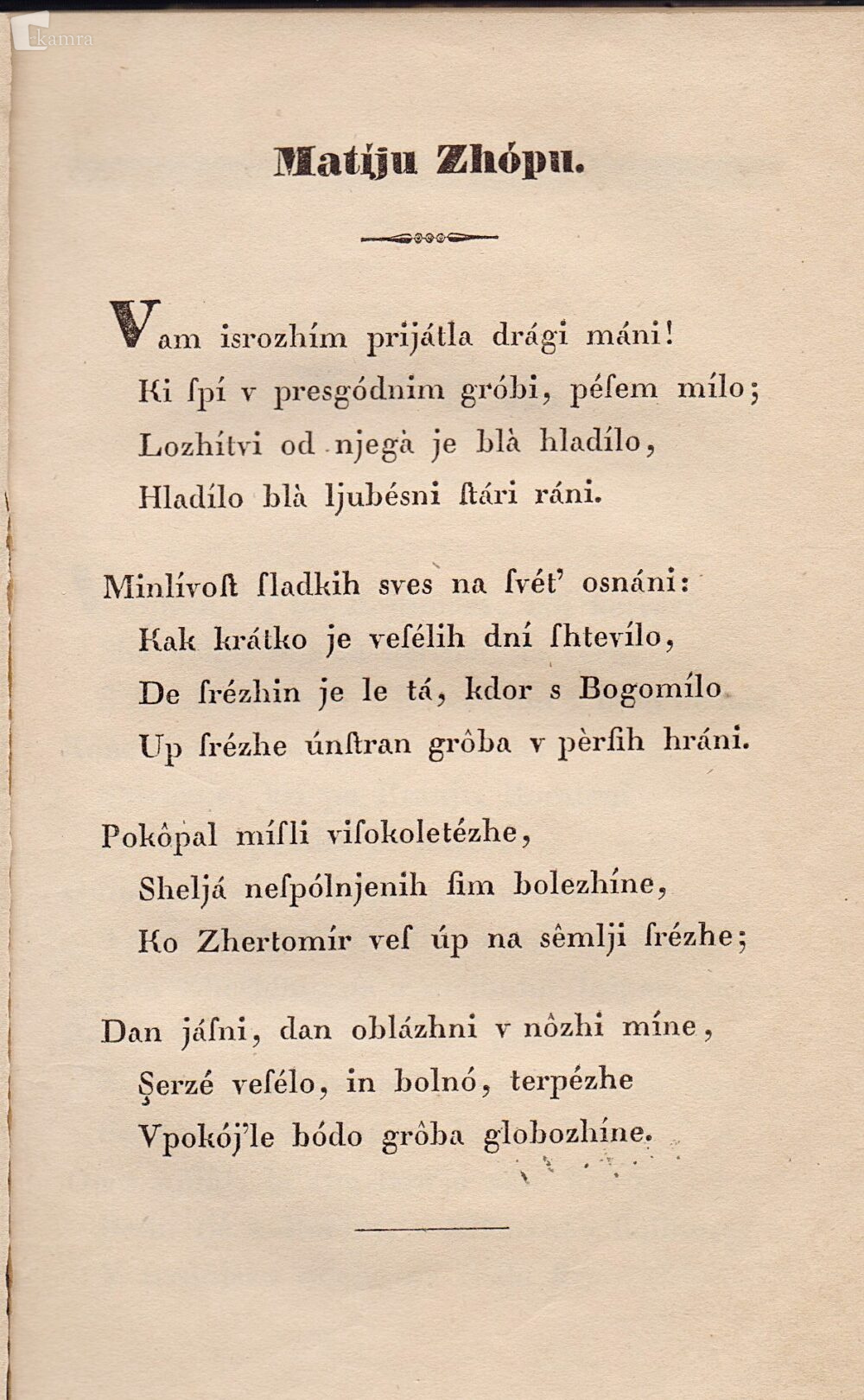 Svojo najobsežnejšo pesnitev je Prešeren posvetil Matiji Čopu, svojemu tragično preminulemu prijatelju in literarnemu mentorju.