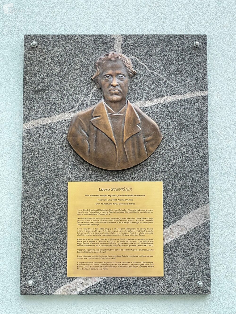 Lovro Stepišnik - spominsko obeležje na pročelju Knjižnice Vojnik