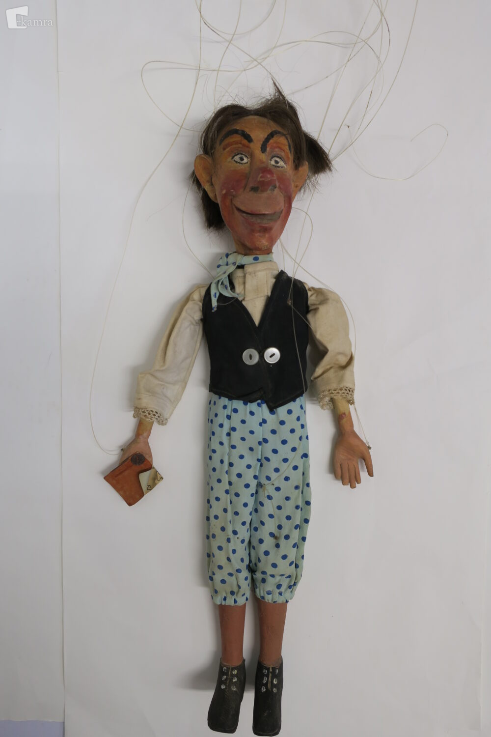 Lesena marioneta, neznan moški lik. Obleče je v svetlo modre hlače z modrimi pikami. Hlače se končajo pod koleni. Ima belo srajco s širokimi rokavi in čipko, črn telovnik z dvema belima gumboma ter rutko okoli vratu, ki je iz istega blaga kot hlače. Nosi črne čevlje gležnarje, ki so del lutke. V desni roki nosi šop papirja ali tanko knjigo. Obraz je podolgovat, ozek in navihano nasmejan. Ozek dog nos, rdeča lica, velike polkrožne obrvi, srednje majhne oči in majhna ušesa ter rjavi (človeški) lasje. Avtor lutke je Matija Glad.