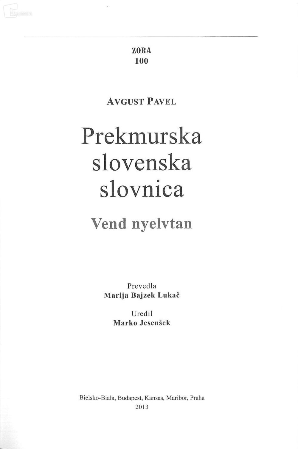 Naslovnica prevedene Pavlove Prekmurske slovnice