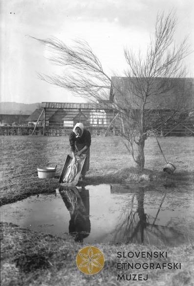Perica drži v rokah leseni ploh. Široka, do pasu segajoča deska je imela na treh straneh nekaj centimetrov visok rob, ki je perico varoval pred mokroto. Pri pranju so ženske perilo ob ploh drgnile, ob splakovanju pa tolkle. Po prvi svetovni vojni so se uveljavili perilniki iz uokvirjene rebraste pločevine.