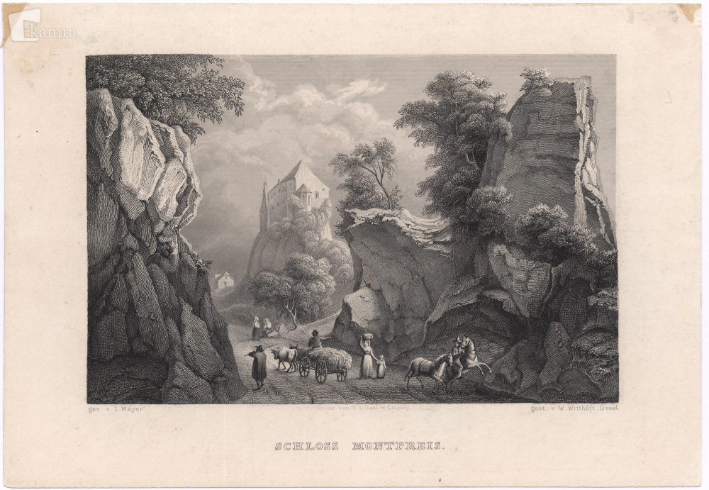 - Ludwig Mayer, Planina, 1847 (1840?), jeklorez, napis: Schloss Montpreis, G/VI – 33 (Pokrajinski muzej Celje).