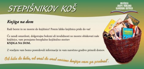 Stepišnikov koš je dejavnost, ki je namenjena članom knjižnice, ki zaradi ostarelosti, bolezni ali invalidnosti trajno ali začasno ne morejo obiskovati knjižnice. Vir: Knjižnica Josipa Vošnjaka Slovenska Bistrica