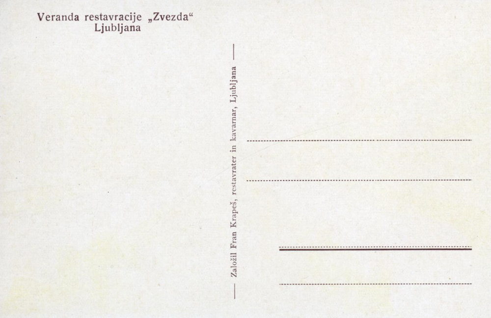 Založnik razglednice je bil sam Fran Krapeš, lastnik restavracije in kavarne Zvezda.