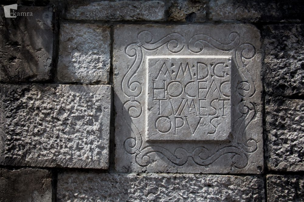 “Zahodni [porton], ki je bolj kiparsko izdelan in ga varuje cela jata krilatih angelskih glavic, ni datiran, na vzhodnem, ki ga krasijo črtno vrezani tulipani in volute, pa sta vzidana tudi dva kamna z latinskim napisom. Po slovensko se glasi: V večjo božjo slavo je bilo narejeno to delo v času župnika Benedikta Fogarina leta Gospodovega 1667.” (Premrl, 2005, str. 10)
