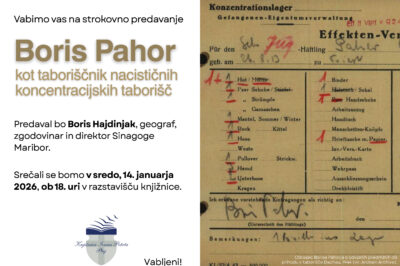 Knjižnica Ivana Potrča Ptuj vabi na strokovno predavanje Boris Pahor kot taboriščnik nacističnih koncentracijskih taborišč. Predaval bo Boris Hajdinjak, geograf, ...