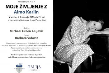 Knjižnica Ivana Potrča Ptuj vas v sredo, 5. februarja 2020, ob 19. uri vabi v razstavišče knjižnice, na ogled monodrame Moje življenje z Almo Karlin.